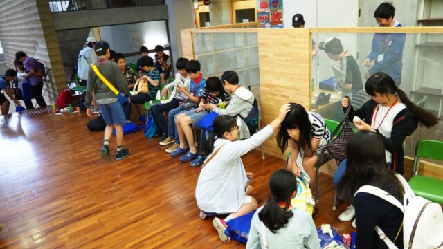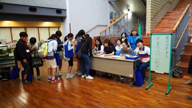 ここ数年の生徒数増大のために、昨年までの会場(ランチルーム)は教室へ変更されました。